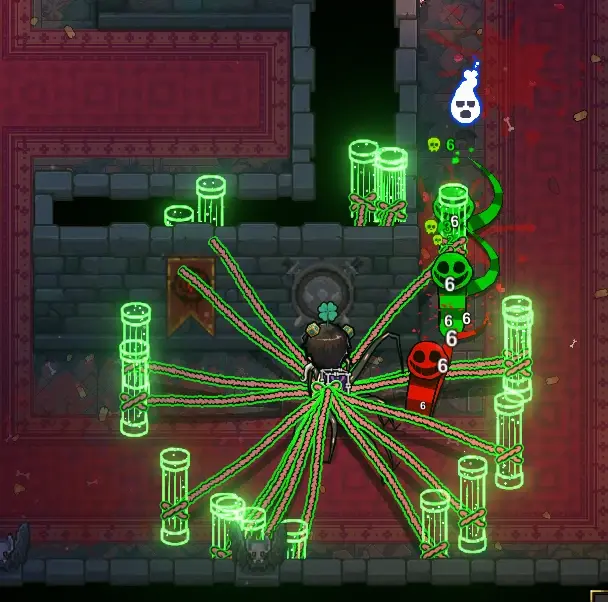这是整体的思路,但是仅凭这套魔法组合想通关三章还是有点难度的,如果想依靠这个套路通关第三章,需要再加一根法杖,搭配另一套脐带组合: