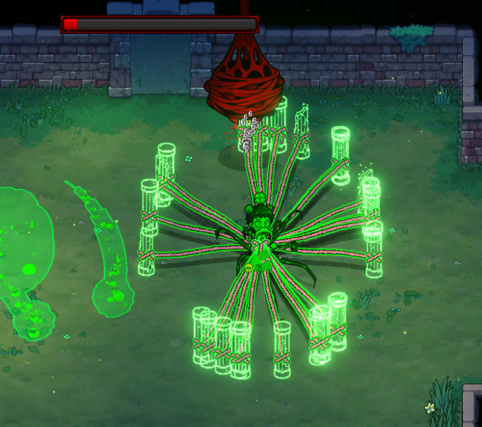 这是整体的思路,但是仅凭这套魔法组合想通关三章还是有点难度的,如果想依靠这个套路通关第三章,需要再加一根法杖,搭配另一套脐带组合: