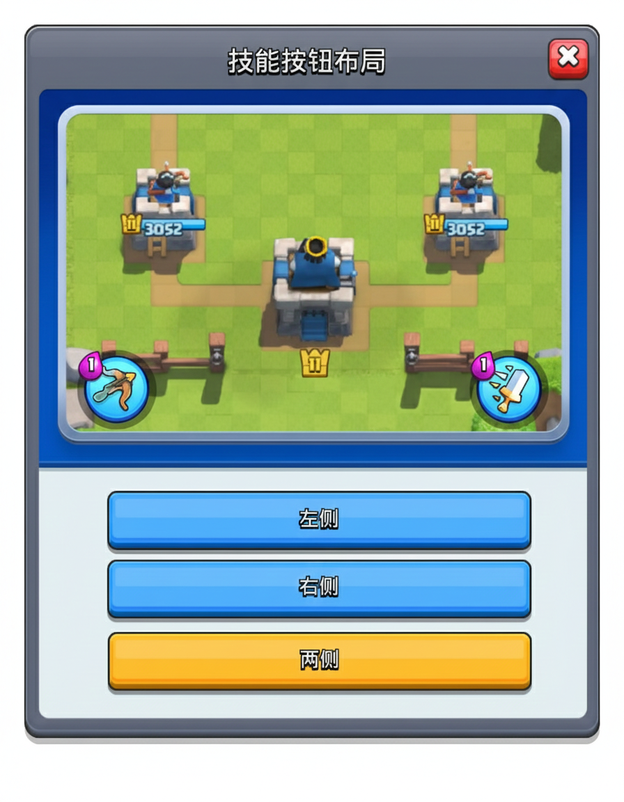 因为能够携带两张英雄卡,原本固定英雄技能位置将不再适用,所以官方推出自定义按钮位置(虽然并非完全自定义,而且也不好用),使玩家能够根据喜好选择位置。