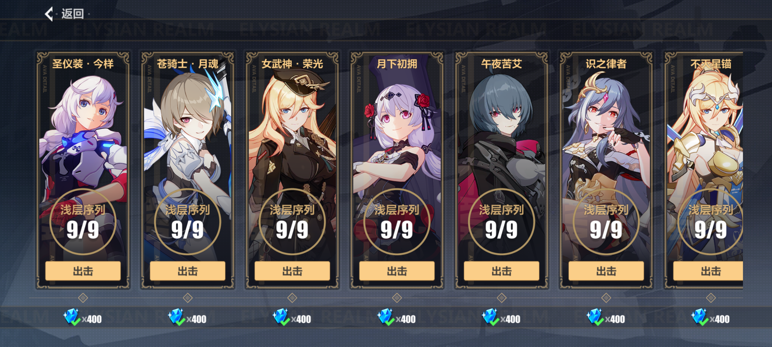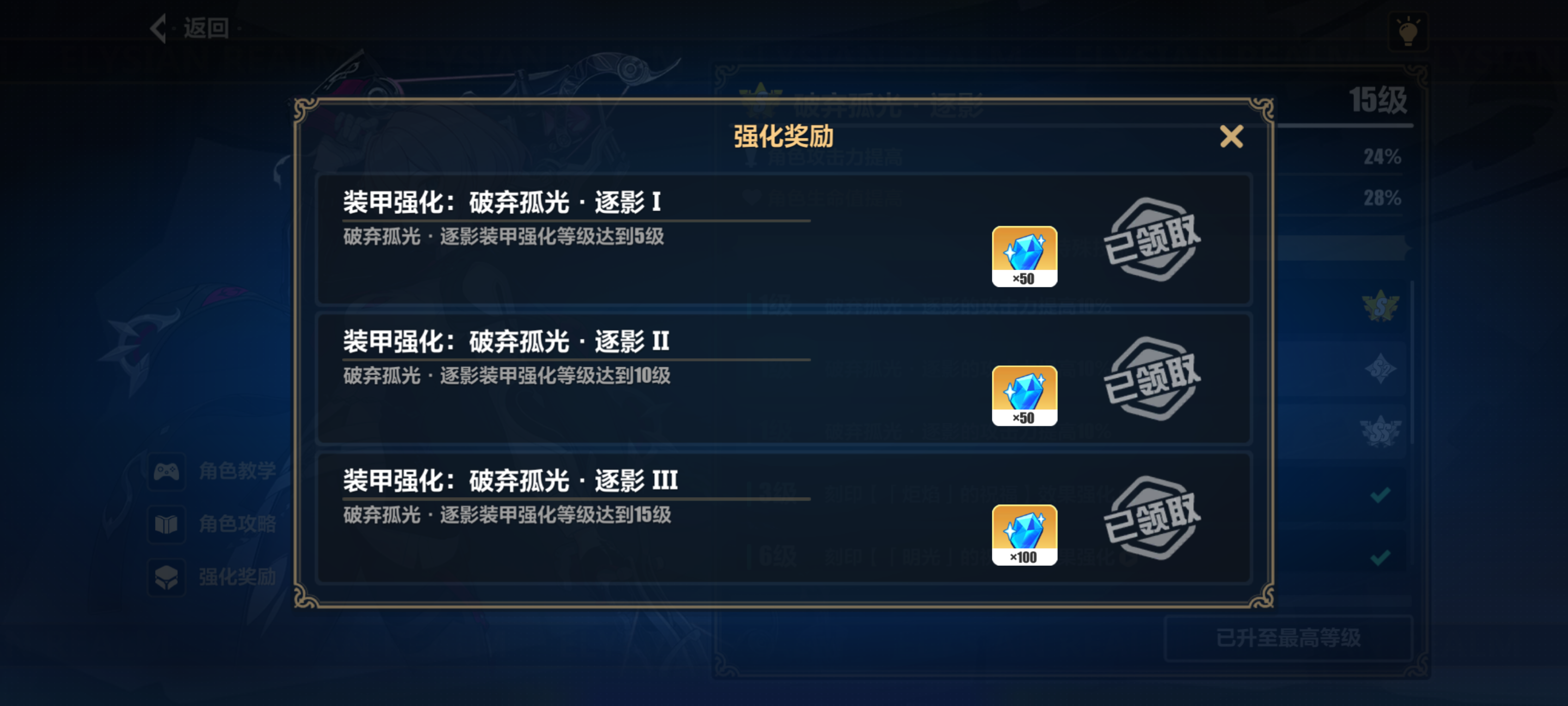 另,每个角色装甲强化15级可以拿200水晶。每个角色浅层序列通关可以拿400水晶。