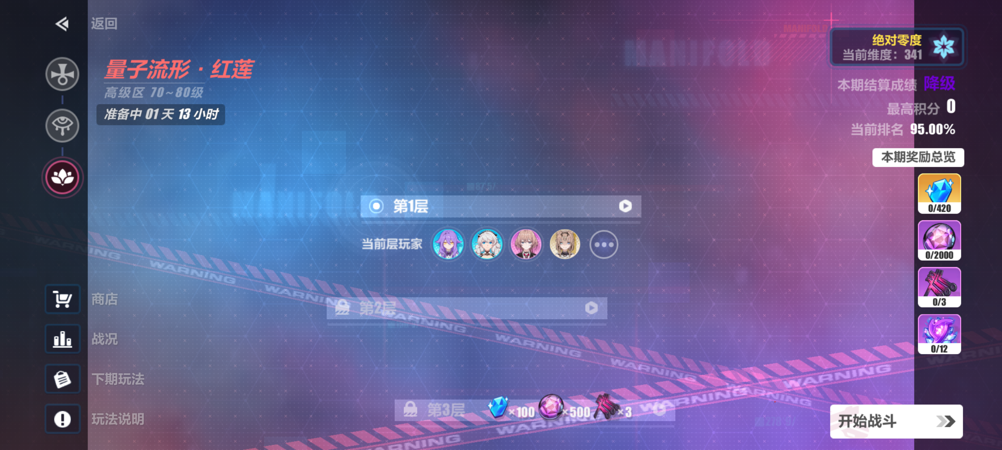 新舰长没毕业角色打1.5死荫难度。有当期强势角色就可以挑战2.25戒约难度拿满水晶。每周一次。