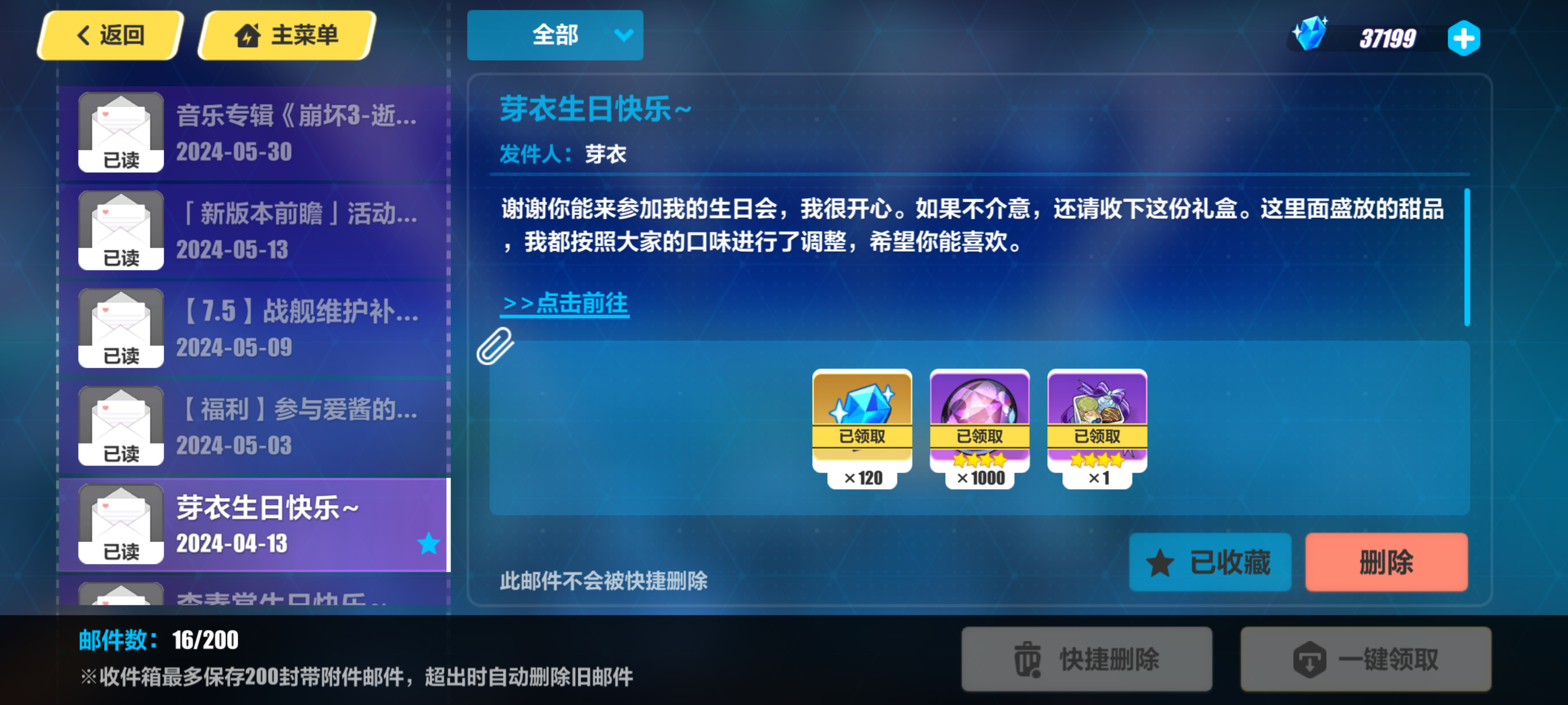 ❺生日水晶:填写生日后即可在生日当日获得水晶邮件,每年一次。女武神角色生日也可获得水晶邮件