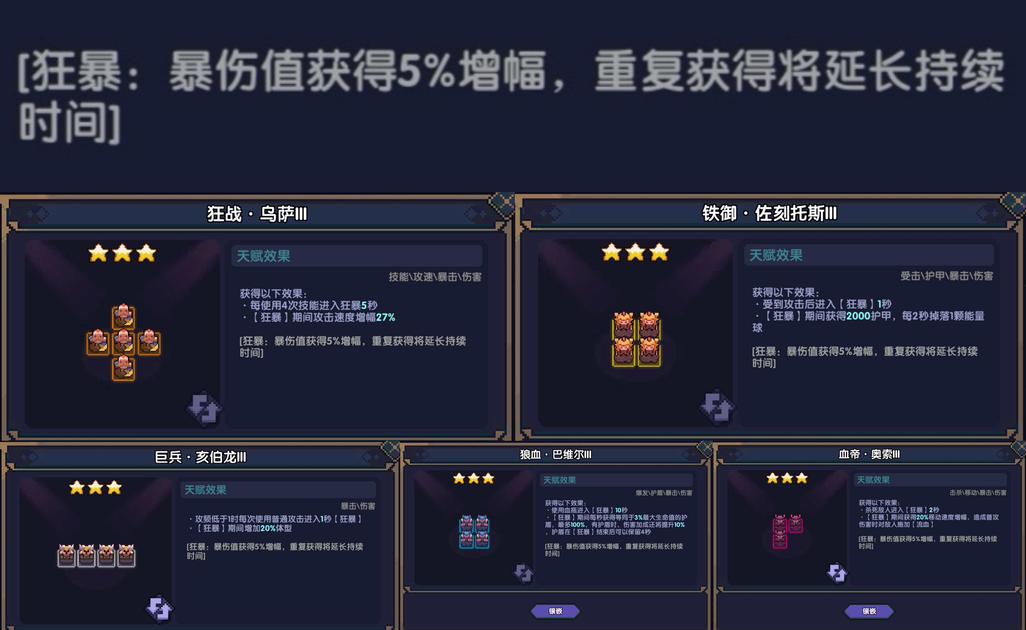 狂暴是挺重要的一个机制,其相关的5个天赋都具有两个效果: