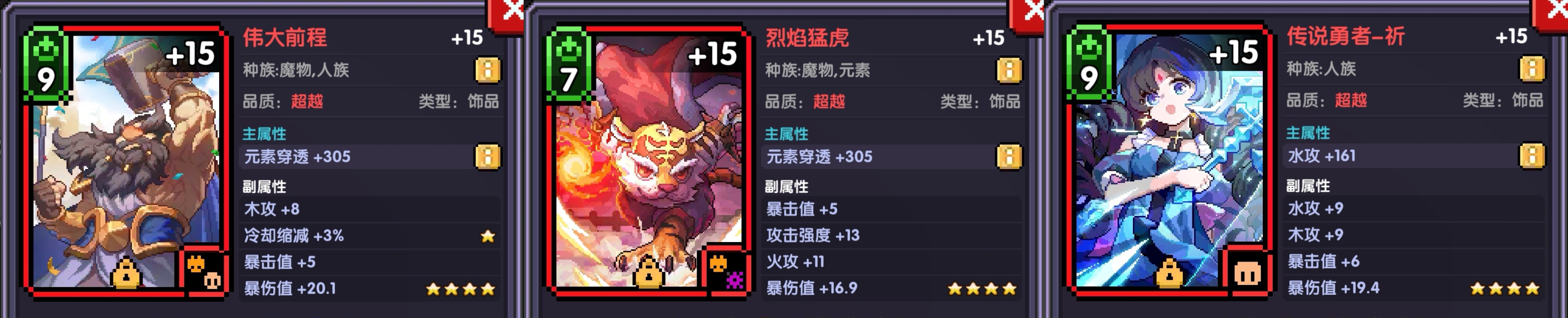 三条属性中优先属攻、伤增。