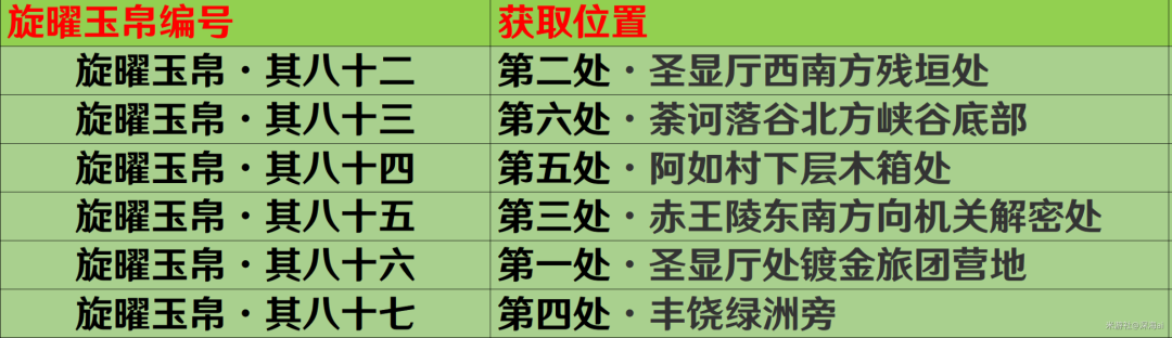 以上就是原神原神·资源获取丨V3.1新增的旋曜玉帛·六个 附对照相关内容。