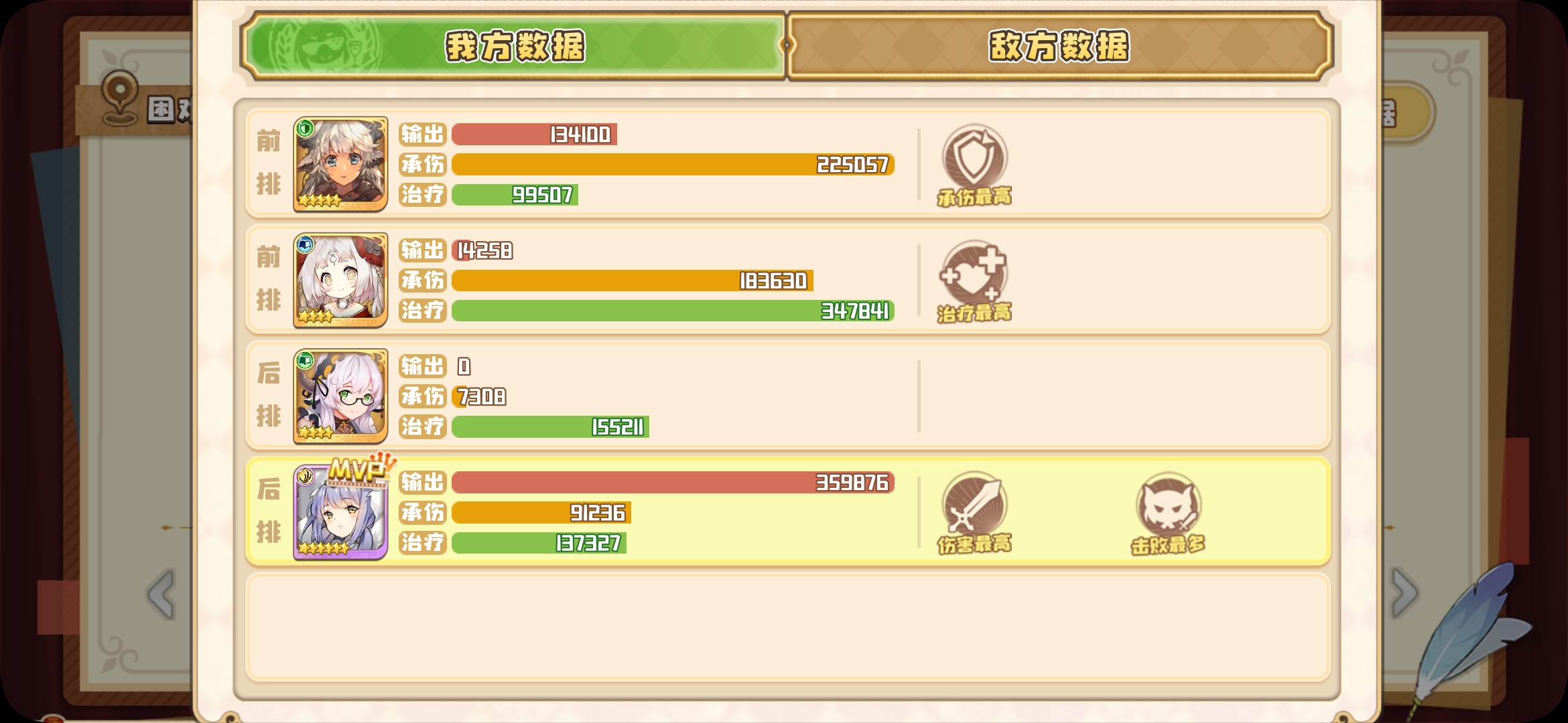 四叶草剧场三个(或者四个)角色过活动最后一关如下: