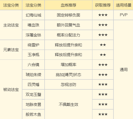 【法宝配置推荐】被动法宝以 “法攻强化 + 属性增益 + 伤害减免” 为核心,防御法宝聚焦物理伤害减免,具体推荐如下: