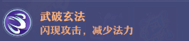 特技推荐:核心选用【武破玄法】,闪现攻击敌方单体目标,临时提升物攻并造成 130% 物理伤害,同时减少与伤害结果等量的法力(对人物最大不超过当前法力的 40%)。