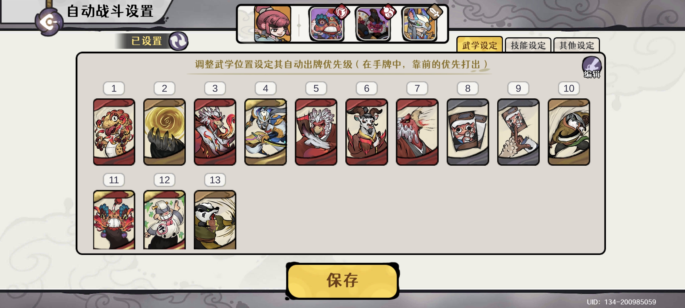 (自动思路:buff牌第一批次,剑魔武学第二批次;过牌武学第三批次;其余第四批次)