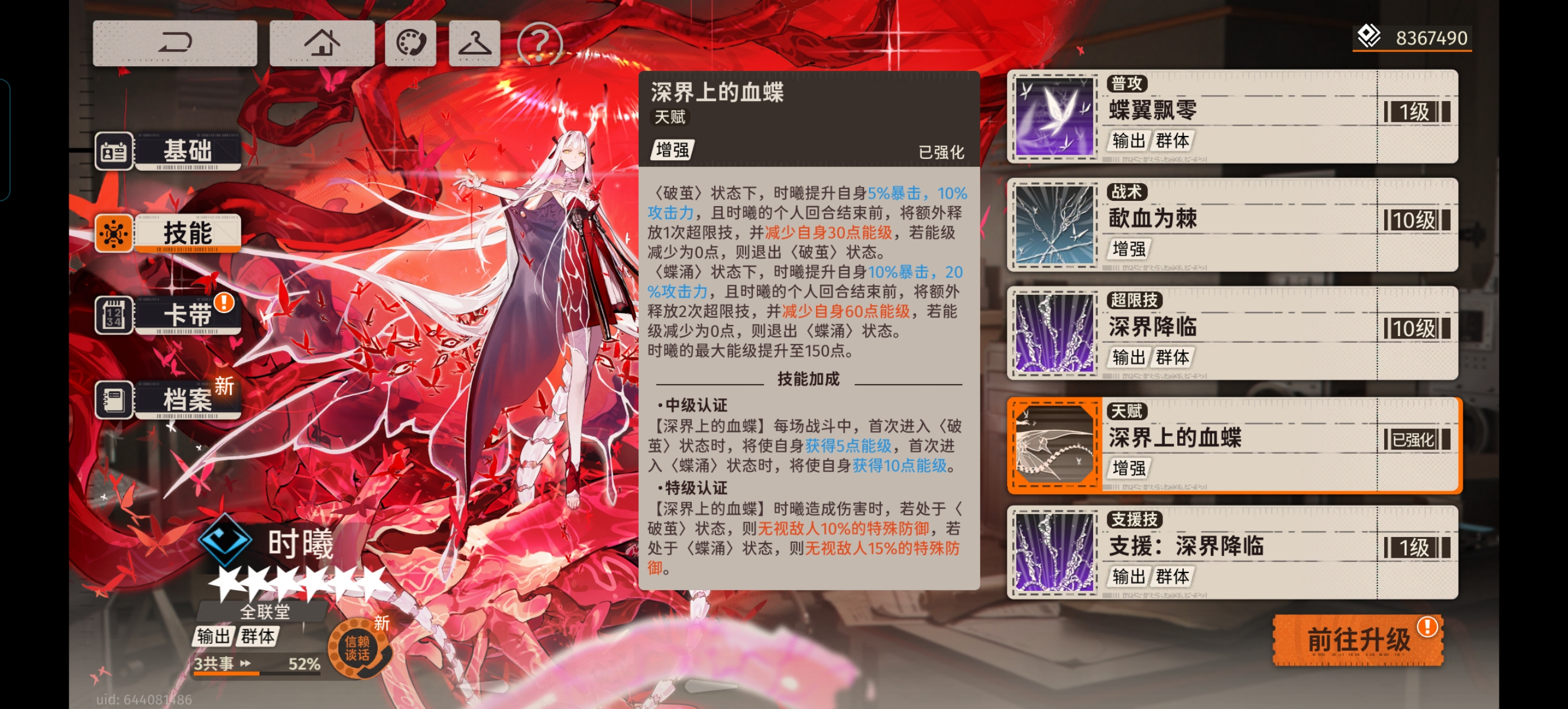 ②:一次超限技会扣全队20%当前生命值,破茧状态额外连动1次,蝶蛹状态额外连动2次。烧血频率非常高,无额外收益的纯烧血的给队伍的生存压力很大,压力大点的环境很容易内鬼,配合对面害死队友。