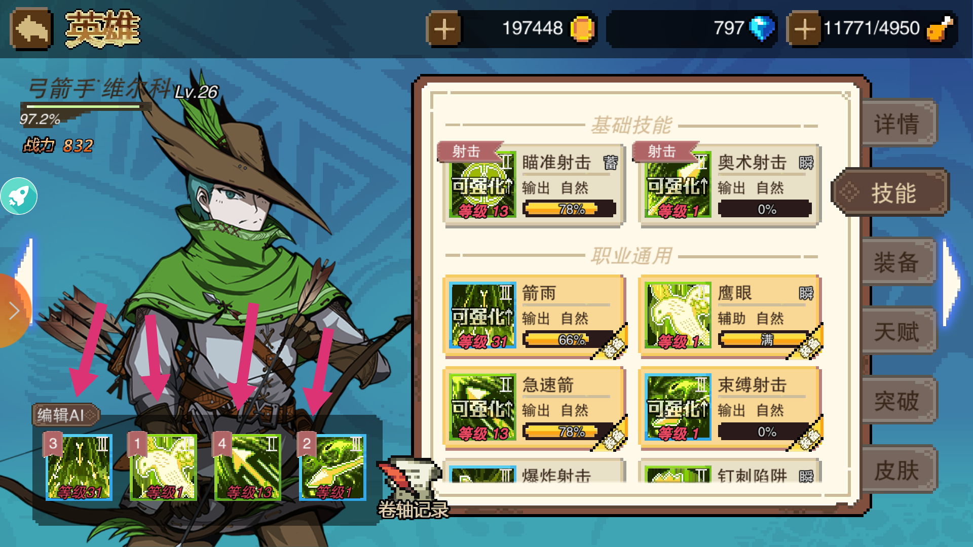 弓箭手竞技场ai自动战斗技能先后顺序