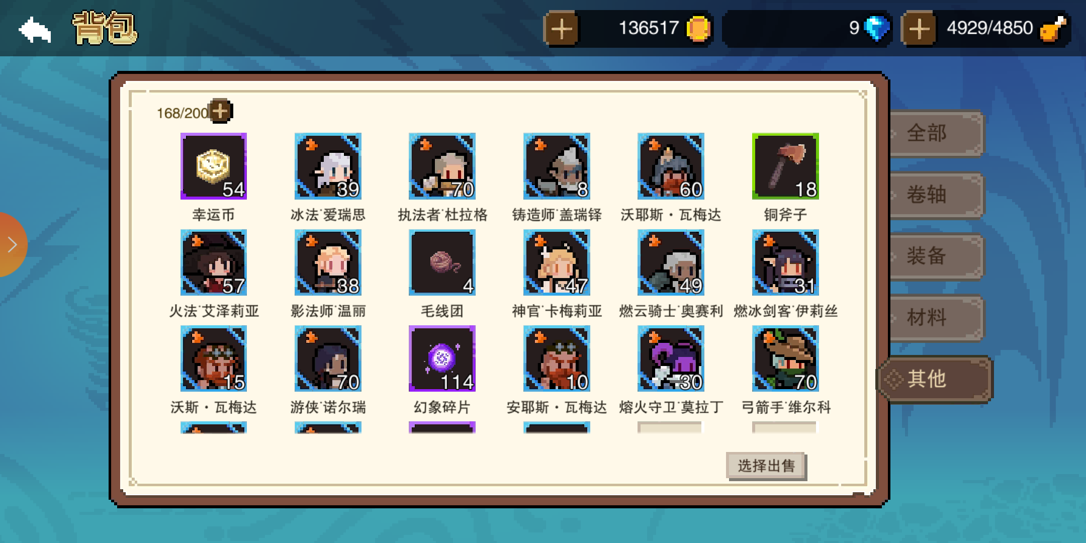 1.画风,像素类画风,我其实是不怎么喜欢的,尤其是每个角色之间没有特别明显的去别的时候,我就更迷了,每次在背包里找一个角色已经穿上的装备时,就那装备边上的角色小标识,每次都看得我眼睛疼,到底那个才是。