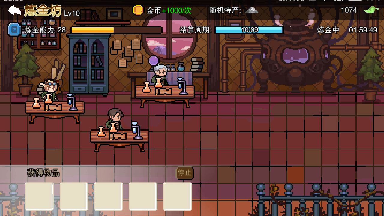 当等级到达一定时,在主界面左边会有这些用来获取资源的设施(本图为炼金)