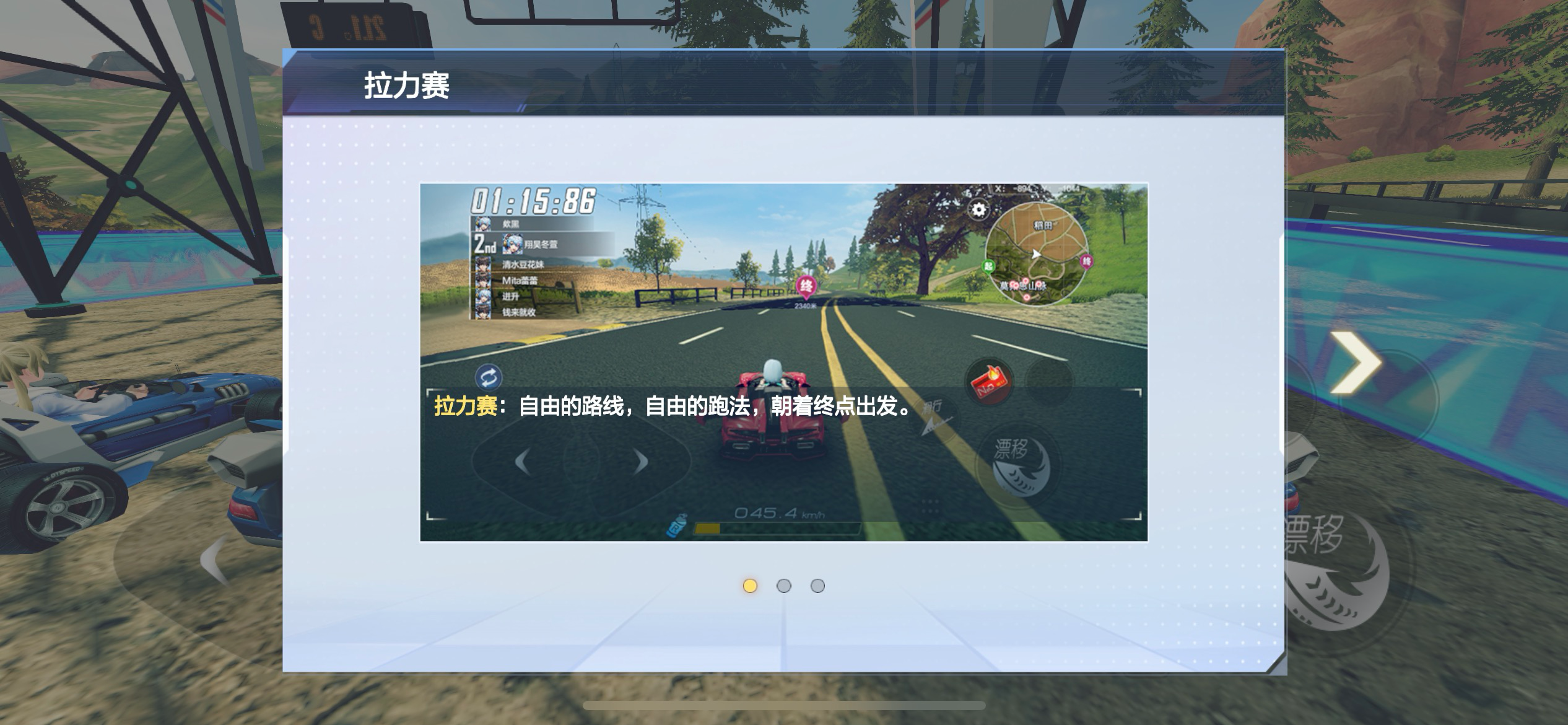 正式进入游戏之后,第一次玩的赛车手们会看到图中的【拉力赛】贴心介绍哦~