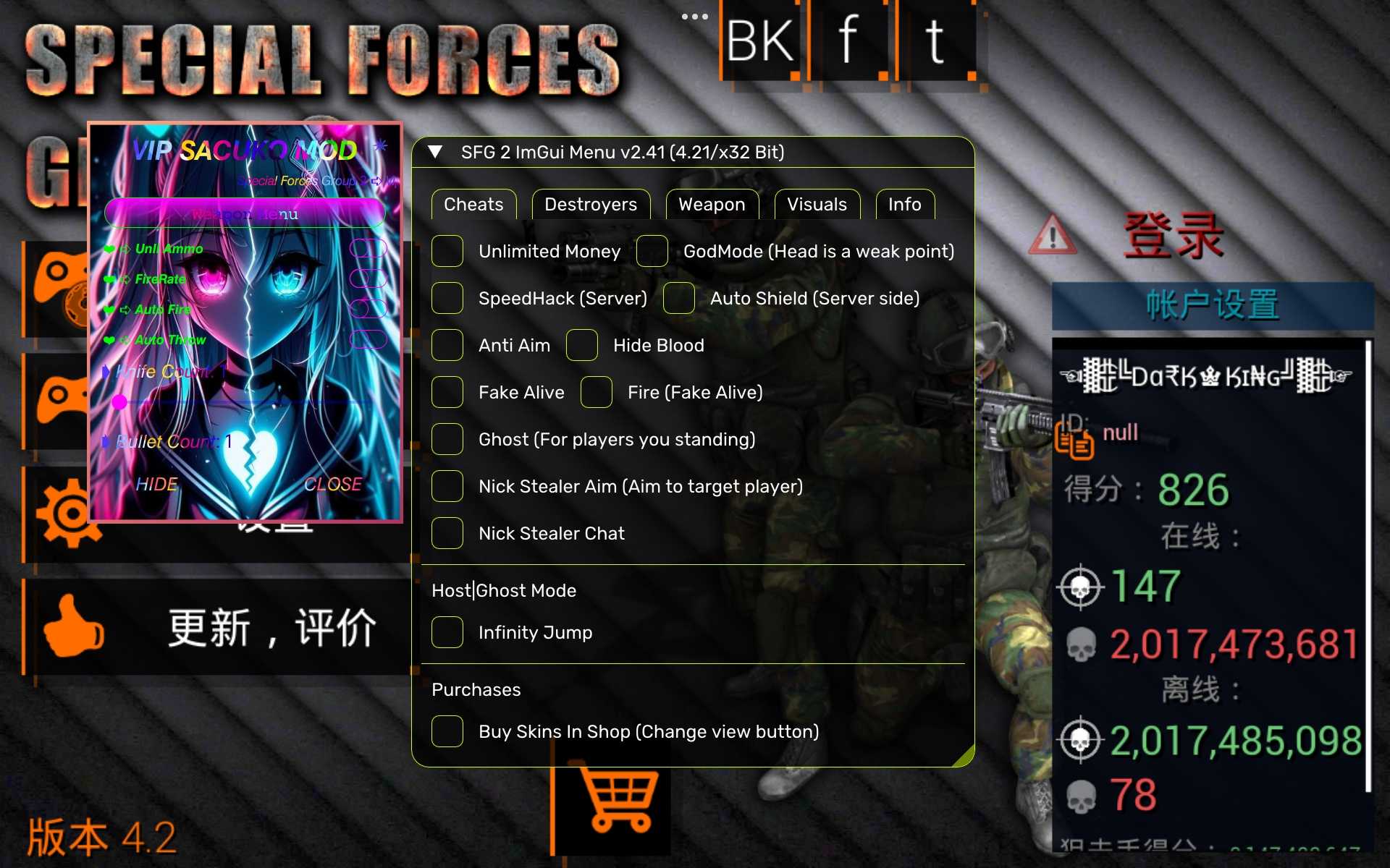 也是牛逼菜单,秒人非常快,有远程刀人功能,刀人速度非常快,死了之后还能刀人,非常强大☠⓵☜╬╬☞⓵已有数据包,已导入obb,直接下载就可以了