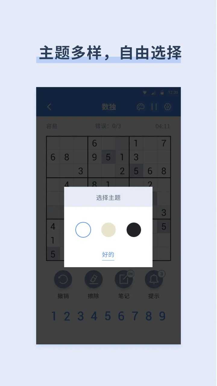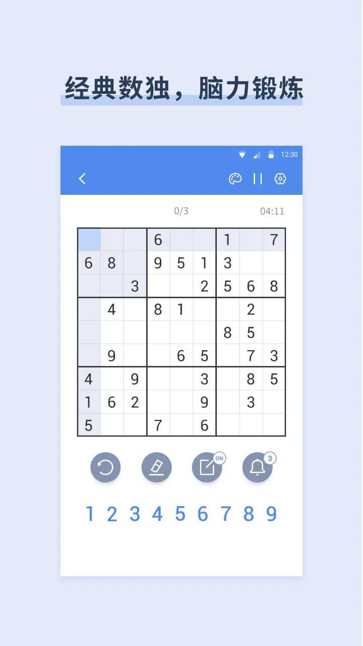 这款经典数独是用数字填充9x9的宫格,让每一行,每一列和每个3x3小九宫格部分都包含1到9之间的数字。本数独分四个难度,你可以自由选择数独题目的难度。在开始时,9x9的宫格中会有一些方格填上数字。你要做的是运用逻辑来填上缺失的数字并完成宫格。数独作为一款数字益智产品,不需要你具备计算和特殊的数学技能,虽然玩法简单,但数字排列千变万化,怎么玩都不腻。可以提升专注力和智力!软件特色:1 数独题目丰富,分简单,中级,困难,专家四个级别,不同等级的玩家可以自由选择2 主题样式丰富,夜间模式主题,常规模式主题,彩色模式主题任意选择3 辅助功能实用,辅助检查错误,重复项突出显示4 笔记功能,不确定的数字笔记记录,复杂题目轻松应对5 提示功能,遇到困难时提供提示,可以有三次机会哦6 统计功能,挑战记录,一目了然小提示:每个数独题目只有一个答案!