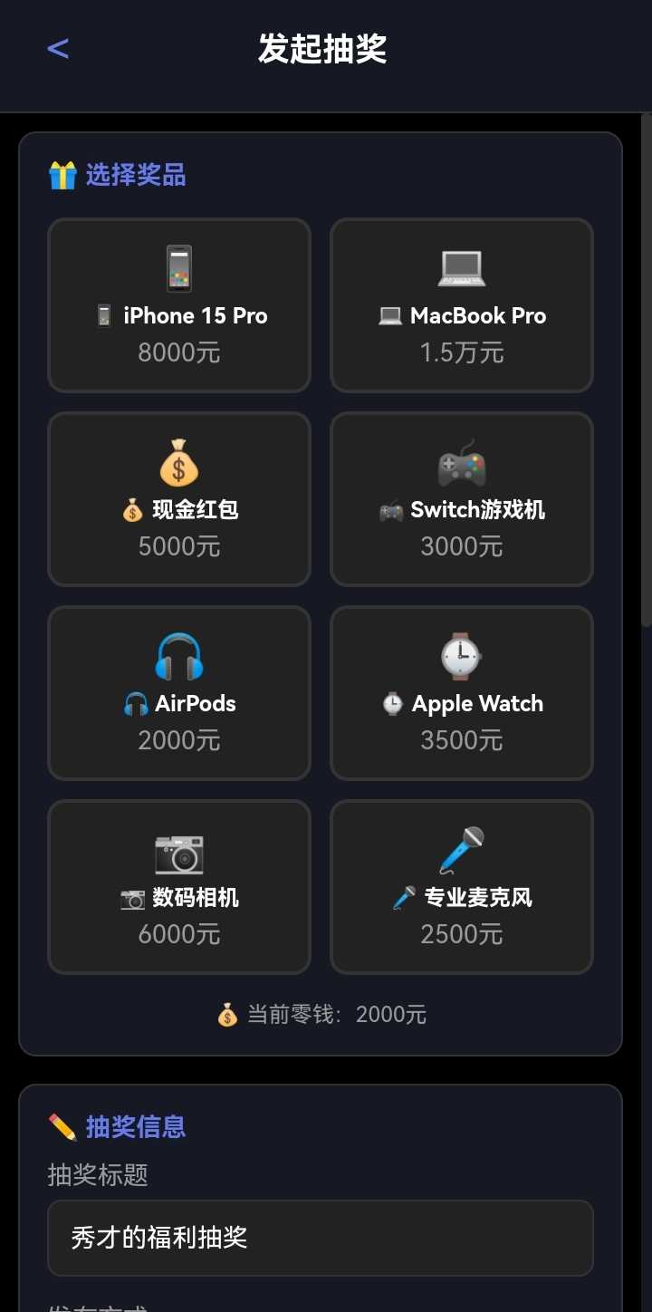 4.新增发起抽奖功能